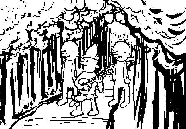 Ты ведёшь свою группу за город, чтобы начать то, что, ты можешь только предполагать, будет безумным фестивалем убийства драконов. Двое твоих компаньонов крепки телом, верны и, очевидно, очень умны. Тебе интересно, как их зовут. Но ты слишком занят своими обязанностями лидера, чтобы спросить, и ты решаешь, что, наверно, просто придумаешь потом для них тупые имена.