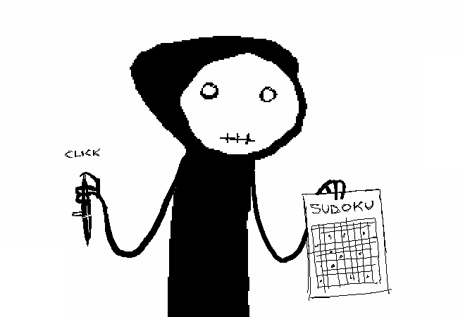 Смерть щёлкает своей ШАРИКОВОЙ КОСОЙ.