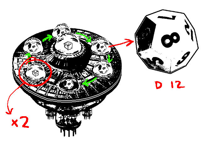 Кости в пяти других выбрасывателях умножаются на это число и становятся 12-гранными костями!